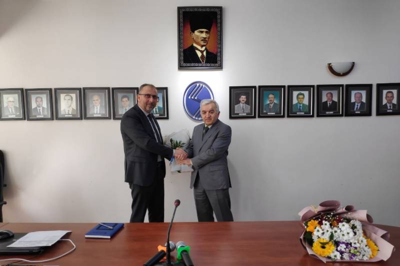 Fakülte Yönetim Kurulu toplantısında dekanlık devir teslim töreni gerçekleştirilmiştir. Törene rektör yardımcısı ve eski dekanımız Prof.Dr. Halit Yaşar, rektör yardımcılarımız Prof.Dr. Özer Köseoğlu, Prof.Dr. Mehmet Barış Horzum, yeni dekanımız Prof.Dr. Ertan Bol ve Fakülte Yönetim Kurulu üyelerimiz katılmışlardır. Toplantıda eski ve yeni dekanlarımız birbirlerine başarı dileklerinde bulunmuş ve dekanlık makam devri gerçekleştirilmiştir.