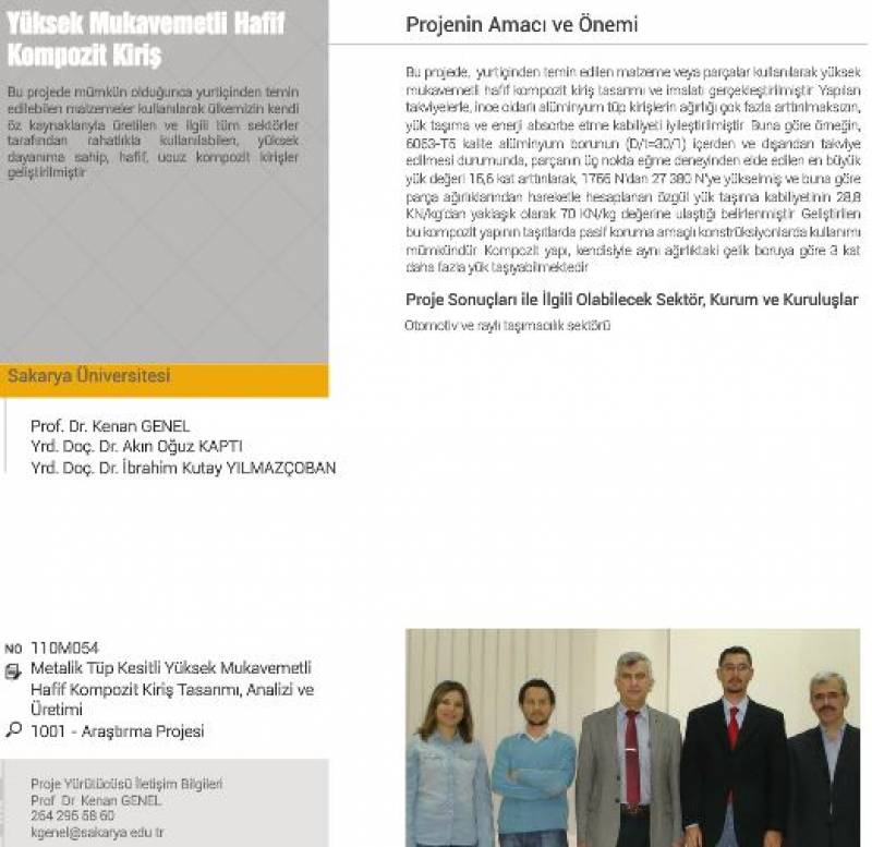 Öğretim Üyemiz Prof. Dr. Kenan Genel’in yürütücülüğünü yaptığı “Yüksek Mukavemetli hafif kompozit kiriş tasarımı, analiz ve üretimi” başlıklı proje, başarı öyküleri kitabında yer almıştır.