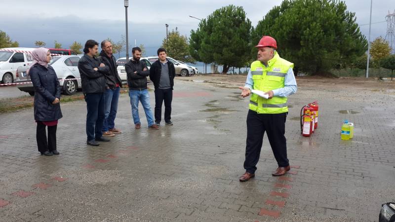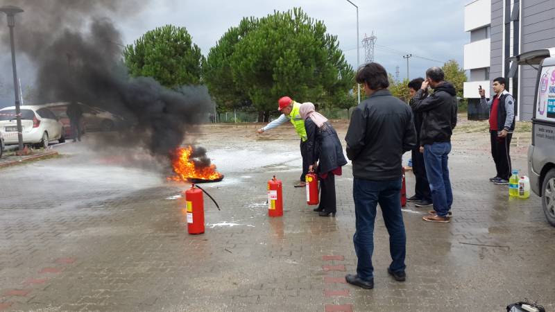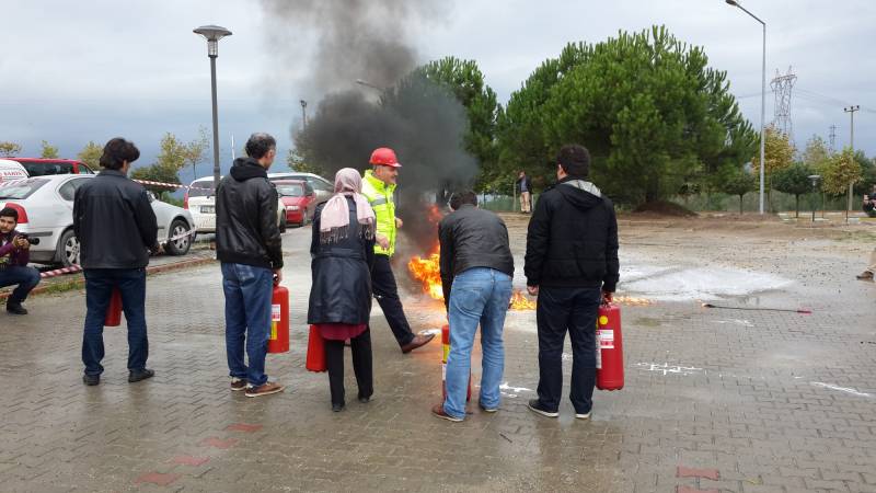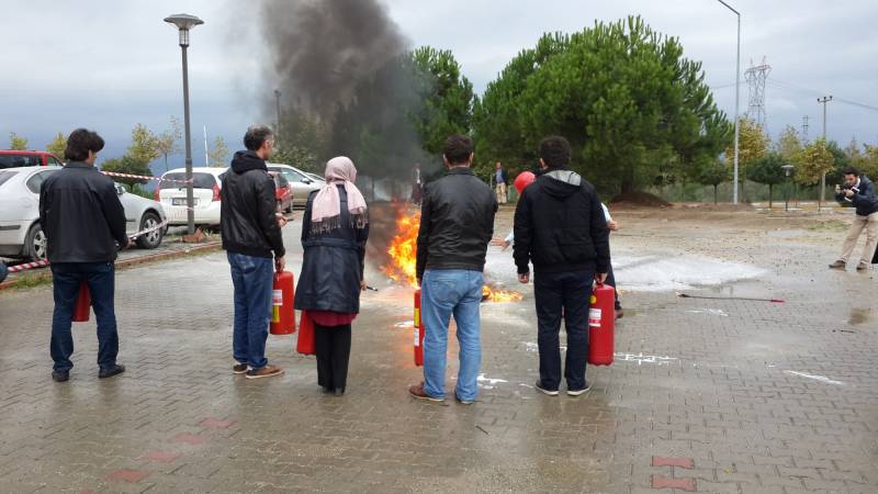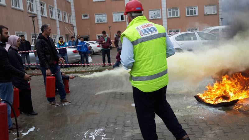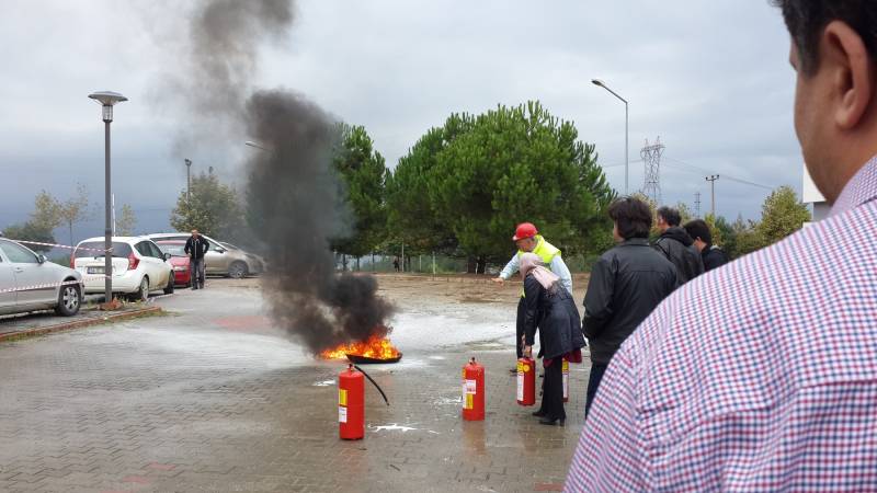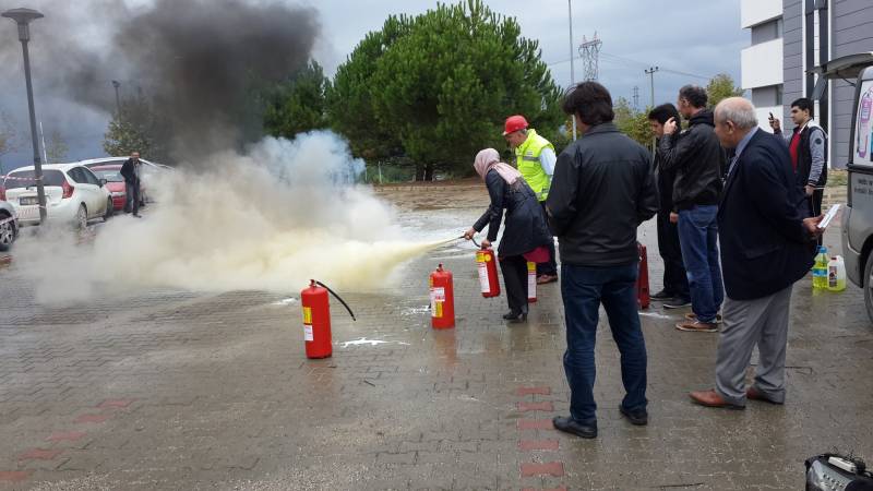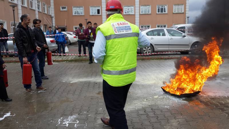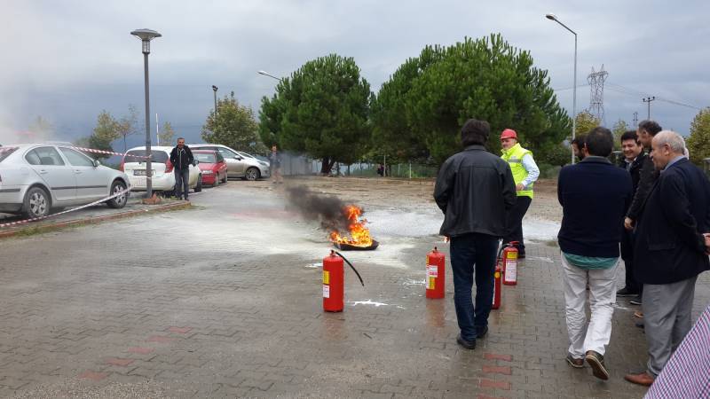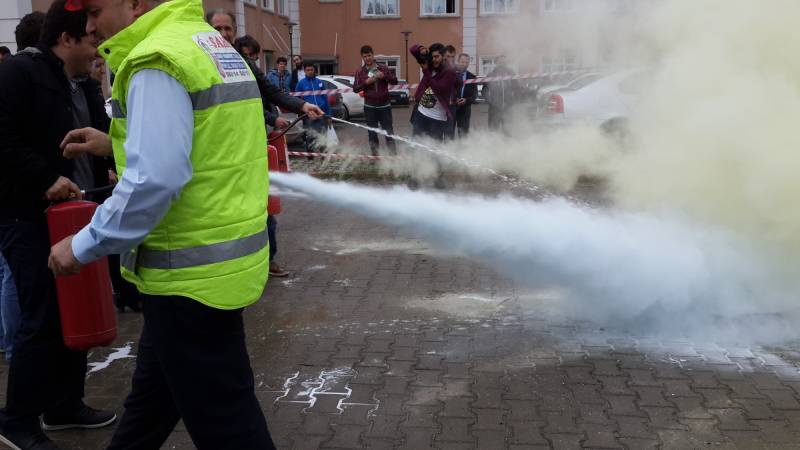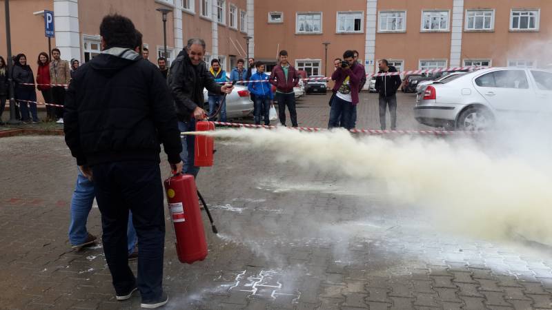Tatbikatta yangın ve türleri hakkında bir konuşma yapan İhsan Şahin, yangın anında neler yapılması gerektiği, yangın tüplerinin kullanımını ve yangın sonrası yapılması gerekenler konusunda çeşitli bilgiler verdi.