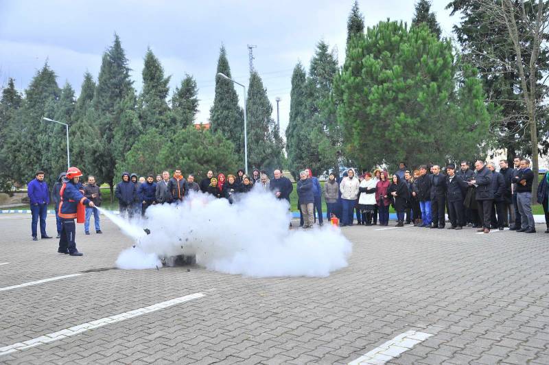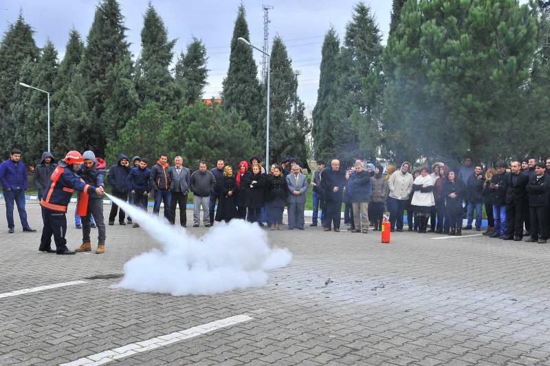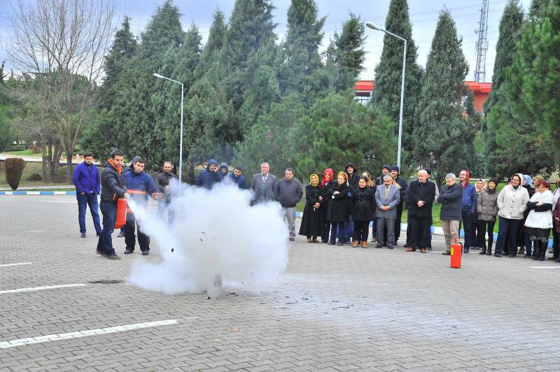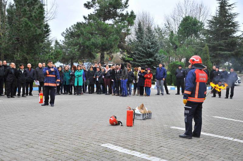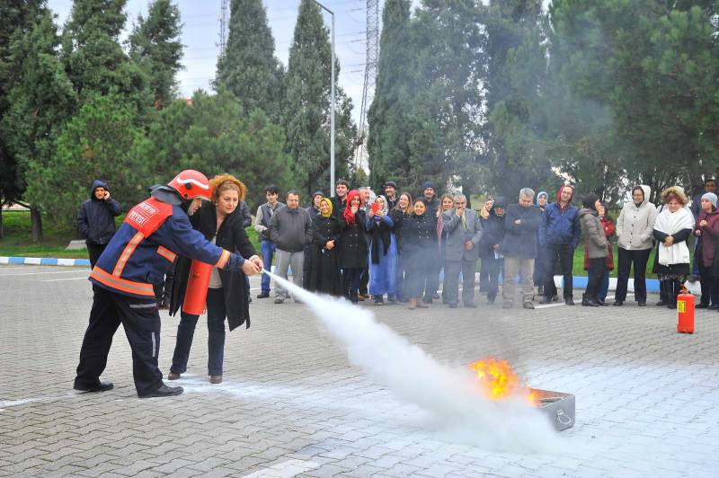 Tatbikatta yangın tüplerinin kullanımını ve yangın sonrası yapılması gerekenler konusunda çeşitli bilgiler verdi.