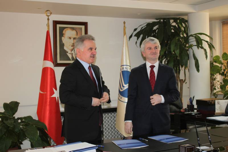 TUSAŞ Motor Sanayii A.Ş. (TEI – TUSAŞ Engine Industries Inc.) Genel Müdürü Prof. Dr. Mahmut F. AKŞİT, Sakarya Üniversitesi Rektörlüğü ve Mühendislik Fakültesi Dekanlığını ziyaret etti. Sakarya Üniversitesi Rektörü Prof. Dr. Muzaffer ELMAS, Mühendislik Fakültesi Dekanı Prof. Dr. Orhan TORKUL, Dekan Yardımcıları Doç. Dr. Yılmaz UYAROĞLU ve Yrd. Doç. Dr. Gültekin ÇAĞIL, Sakarya Teknopark Genel Müdürü Prof. Dr. Tahsin ENGİN ve mevcut halde TEI’de danışmanlık hizmeti veren Üniversitemiz Makine Mühendisliği Bölümü öğretim üyesi Prof. Dr. Ali Osman AYHAN’ın bulunduğu ziyarette, gelecekte yapılabilecek muhtemel işbirlikleri görüşüldü ve bu kapsamda Savunma Sanayii için Araştırmacı Yetiştirme Programı (SAYP) mutabakat metni üzerinde iki kurum arasında ön imzalar atıldı. TEI ile yapılan ön protokol kapsamında başlayan, Sakarya Üniversitesi’nin Savunma Sanayii’ne yönelik bu tür işbirliklerinin özellikle bölgemizde bu alanda faaliyet gösteren diğer firmalarla da devam etmesi ve Ülkemizin ihtiyaçlarına hizmet edilmesi hedeflenmektedir.