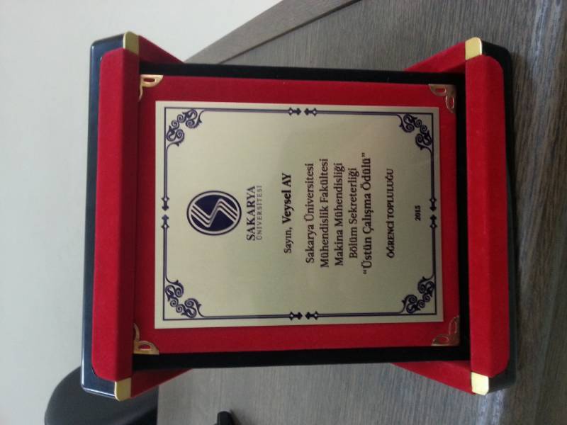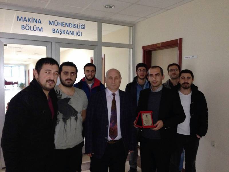Makina Mühendisliği Bölümü, bölüm sekreteri Veysel Ay, başarılı çalışmalarından dolayı Makina Mühendisliği Bölüm Başkanı Prof.Dr. İmdat Taymaz ve Rekötürümüz Prof.Dr. Muzaffer Elmas tarafından ödüllendirilmiştir. Veysel Ay'ın başarılarının devamını diliyoruz.